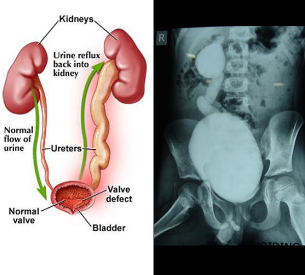 Vesico-ureteric reflux (VUR) occurs when the valve between the ureters (the tubes that carry urine away from the kidneys) and